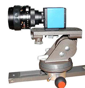 Hierzu wird eine DMK-Kamera (z.B. 21AF04) auf das Fernrohr aufgesetzt. Als Objektiv verwende ich ein 50mm f/1.4 Objektiv. Man kann auch genausogut eine Watec oder eine Mintron benutzen. Wichtig ist die schnelle Ausgabe der Bilder a la Video auf einem Laptopdisplay oder Fernsehmonitor.