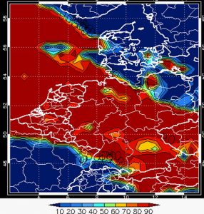 Wetterzentrale: Europakarten für die Ergebnisse des Modells. Klickt man auf „Mitteleuropa“, so erscheinen die Vorhersagen für Deutschland! Hier wird dann nicht nur die mittelhohe Bewölkung dargestellt, sondern die hohe, mittelhohe und tiefe Bewölkung getrennt in Kartenform gezeigt.